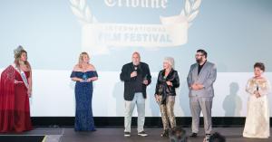 Bobbie Chance and Larry Namer Receiving Awards at the Los Angeles Tribune International Film Festival